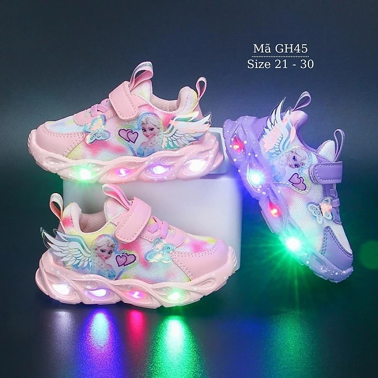 Giày thể thao bé gái có đèn LED phát sáng họa tiết Elsa thiên thần xinh xắn và dễ thương 1 2 3 4 5 tuổi phong cách GH45