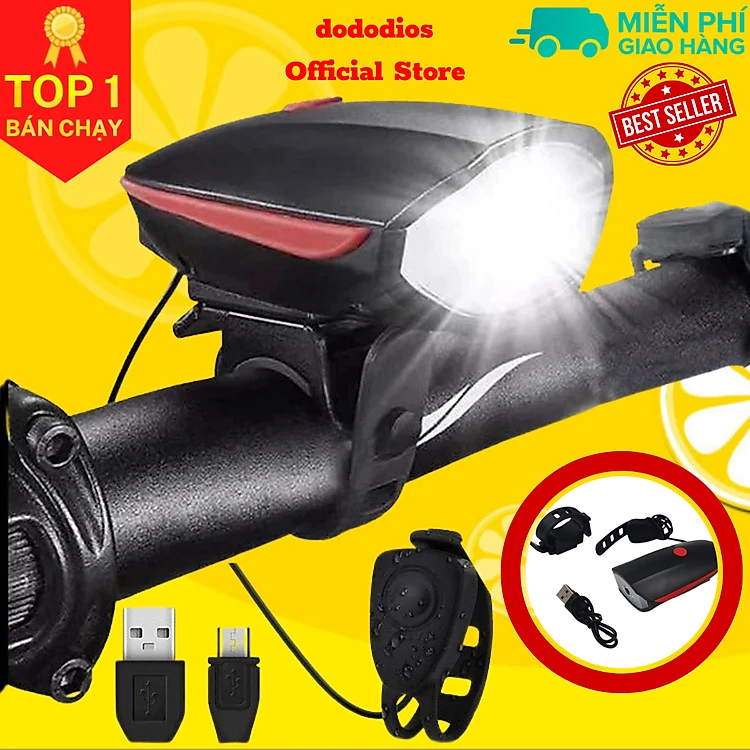 Đèn xe đạp thể thao DoDoDios siêu sáng có còi pin sạc usb led T6 chống nước - Đèn còi xe đạp có 3 chế độ sáng còi to