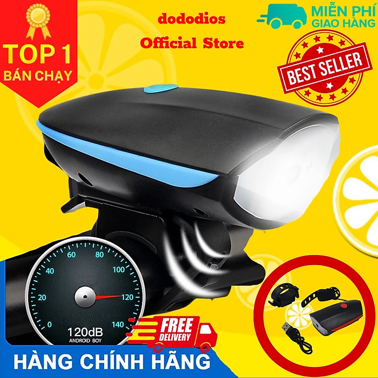 Đèn xe đạp thể thao DoDoDios siêu sáng có còi pin sạc usb led T6 chống nước - Đèn còi xe đạp có 3 chế độ sáng còi to