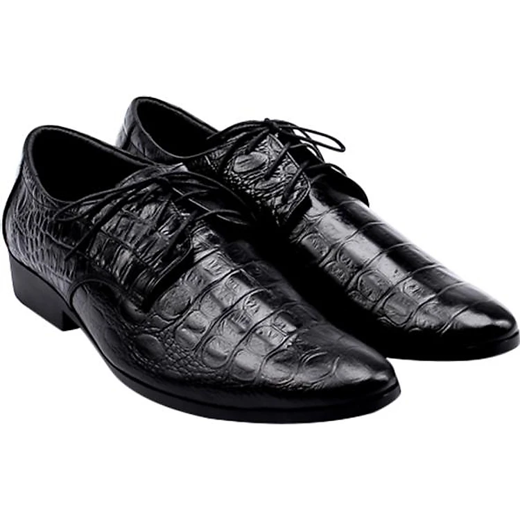 Giày Tây Nam Vân Cá Sấu Huy Hoàng HT7128 - Đen