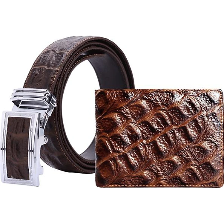 Bộ Ví & Thắt Lưng Nam Vân Cá Sấu Huy Hoàng HT2118-HT4118 (23 x 11,5 cm) - Nâu