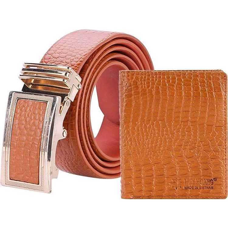 Bộ Ví & Thắt Lưng Nam Vân Cá Sấu Huy Hoàng HT2119-HT4113 (23 x 11,5 cm) - Da Bò