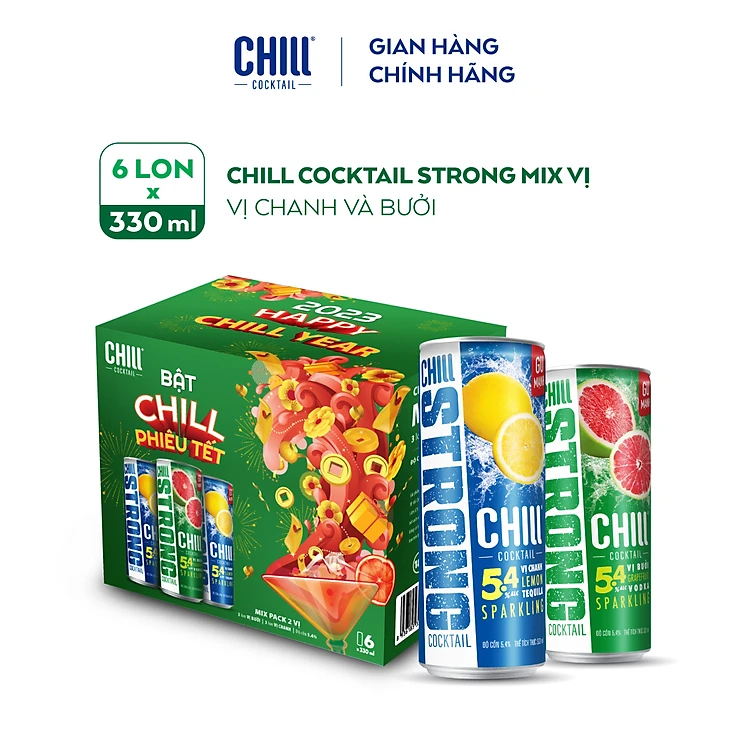 [VOUCHER 50%] Thùng 6 lon Chill Cocktail Strong mix vị Bưởi Vodka & Chanh Tequila (330ml/lon)
