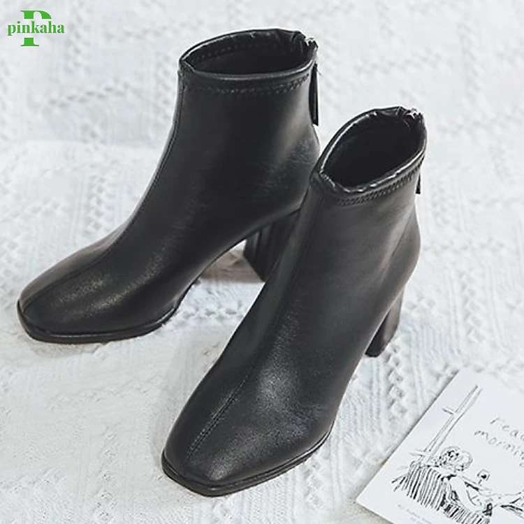 Bốt Nữ Khoá Sau Mũi Vuông Lót Lông Da Mềm Cao Cấp Màu Đen Be Siêu Đẹp Hót Trends 2023