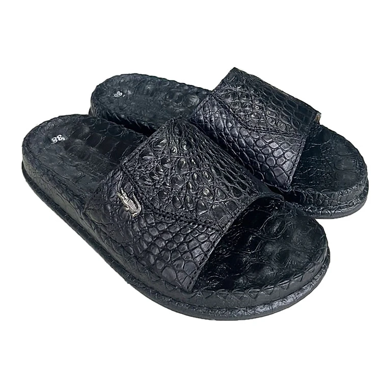 Dép nam da cá sấu đế cao 3cm Trường Hải Màu đen quai ngang DN266