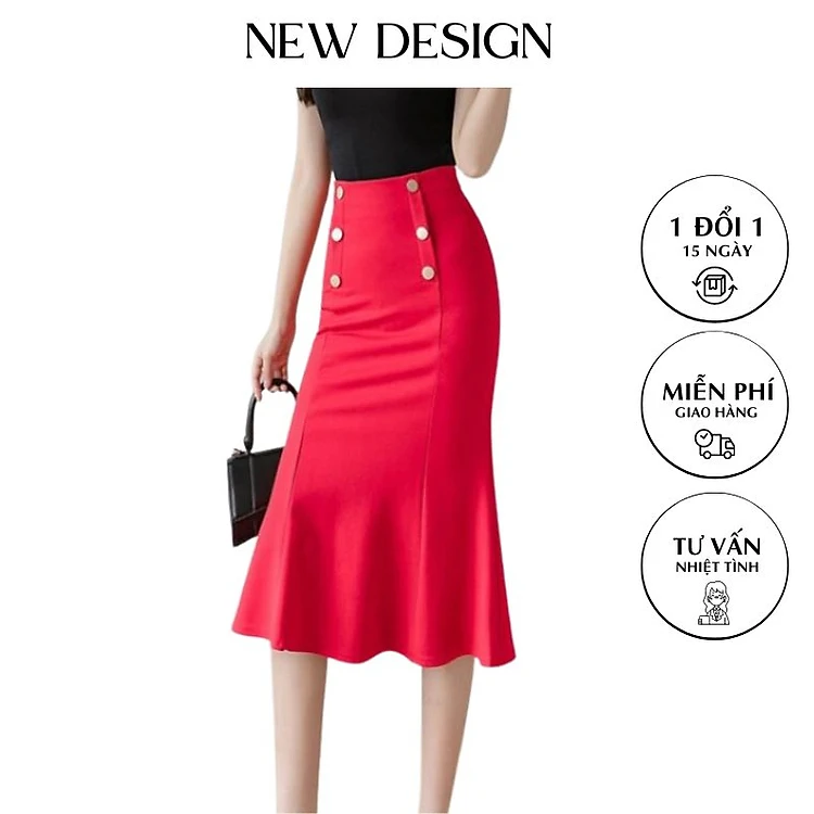 Chân váy đuôi cá dáng midi, Lưng cao, Ôm body, Độ dài 60cm phong cách công sở thanh lịch vải co giãn 4 chiều New Design CV015A