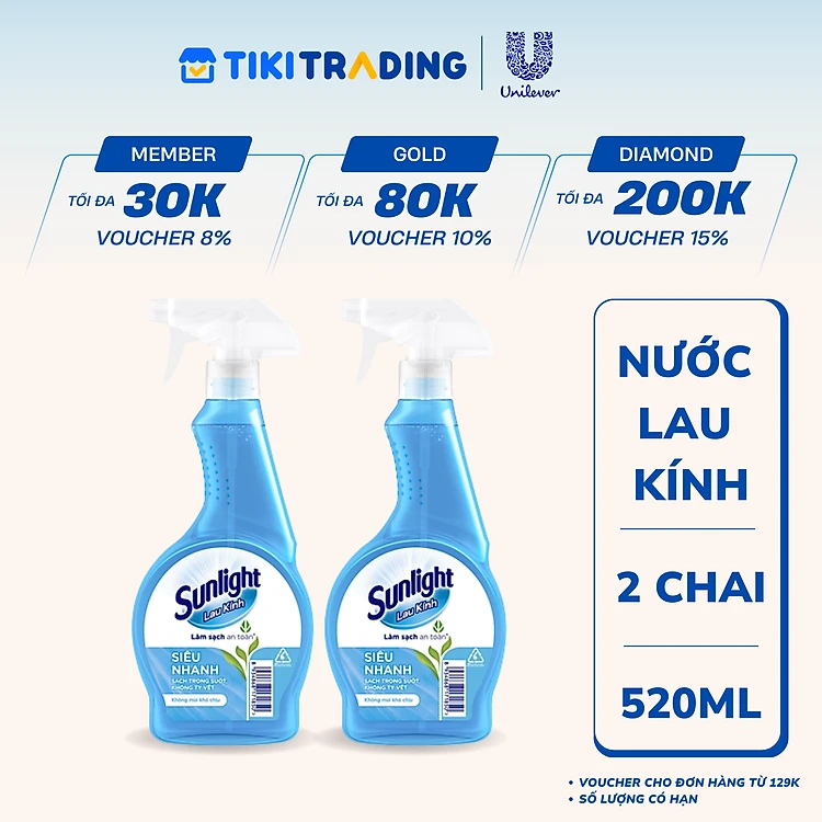 Combo 2 Nước Lau Kính Sunlight Siêu Nhanh Phiên bản nâng cấp từ Cif Sạch Không Tỳ Vết Chai 520ml