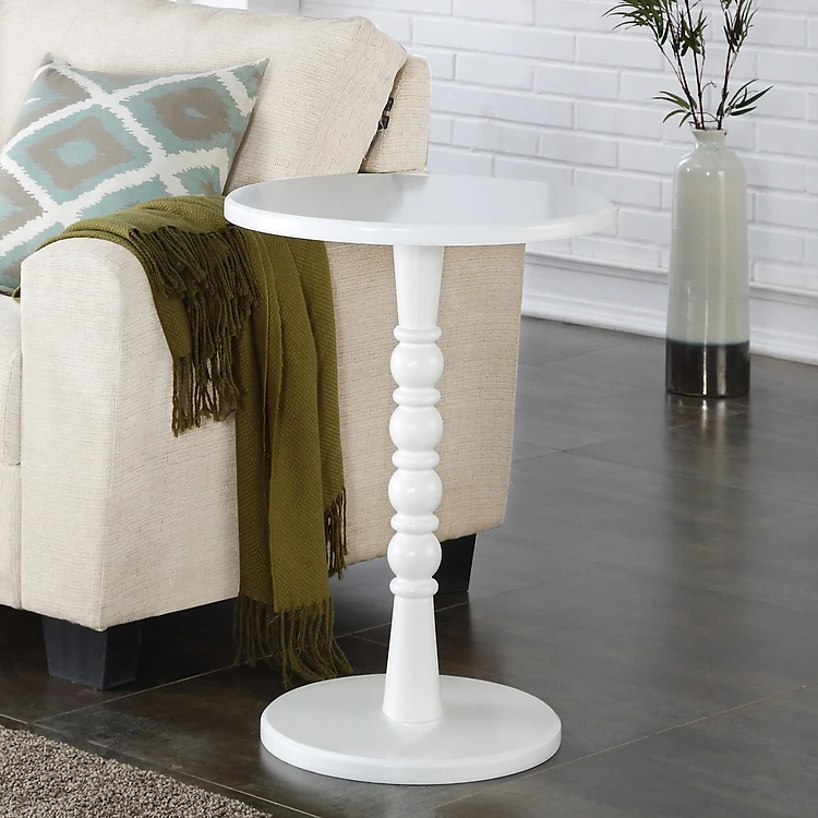 Bàn Tròn Sofa, Bàn Để Đèn, Bàn Trưng Hoa Chân Tiện Màu Trắng Sang Trọng 4035 - Thương hiệu Viet Home Decor