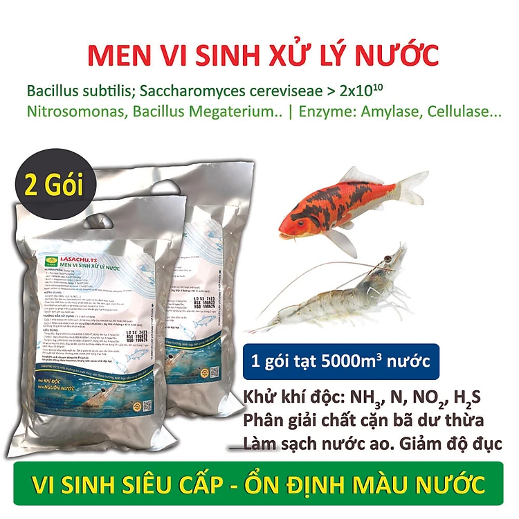 Combo 2 gói Vi sinh xử lý ao nuôi Tôm, Cá - LASACHU