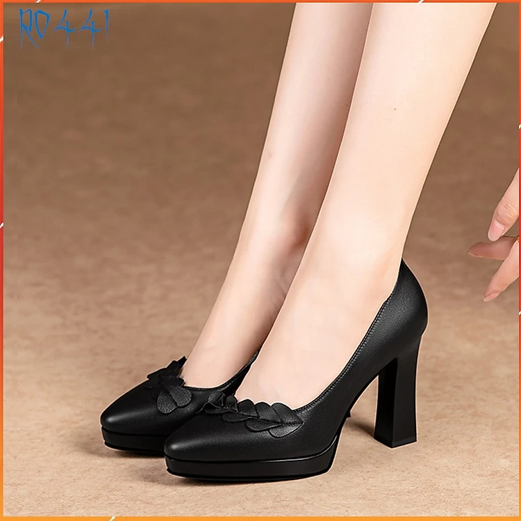 Giày cao gót nữ đẹp đế vuông 8 phân hàng hiệu rosata ba màu đen đỏ kem ro441