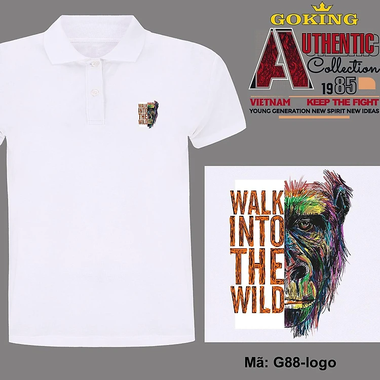 WALK INTO THE WILD, mã logo-g88. Áo thun polo cổ trụ cho nam nữ, form unisex. Áo phông cá sấu hàng hiệu Goking, quà tặng cao cấp cho gia đình, cặp đôi, doanh nghiệp