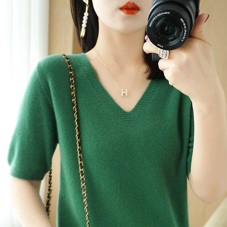 Tên sản phẩm: Áo len dệt kim tay lỡ cổ tim chữ V mẫu 2022