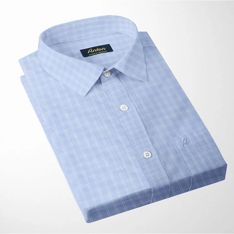 Áo Sơ Mi Nam Công Sở Trung Niên Anton Somianton Xanh Dương Ngắn Tay Kẻ Sọc Vải Sợi Tre - NC160