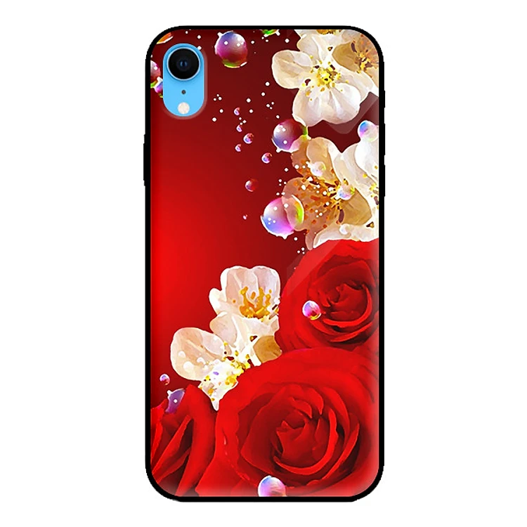Ốp lưng kính cường lực cho iPhone XR HOA HỒNG 3 - Hàng chính hãng