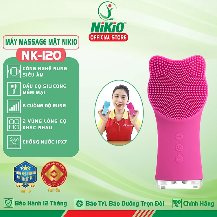 Máy Rửa Mặt Và Massage Nâng Cơ Nikio NK-120 - Tay Cầm Dài Dễ Rửa Sạch Bụi Bẩn Hơn - Sóng Siêu Âm Giúp Làm Sạch Sâu Da, Mát Xa Thư Giãn, Trẻ Hóa Làn Da, Chống Nước IPX7, Siêu Nhỏ Gọn - Phù Hợp Mọi Loại Da