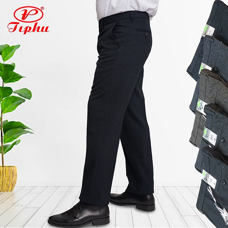 Quần tây âu không ly, vải màu nâu vân chìm, dáng truyền thống, ống suông, hiệu Amazing