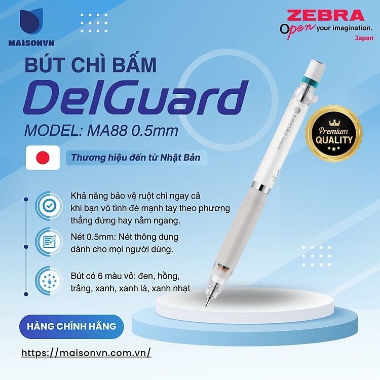 Viết chì bấm không gãy Zebra Delguard ER 0.5mm - [Chính hãng]