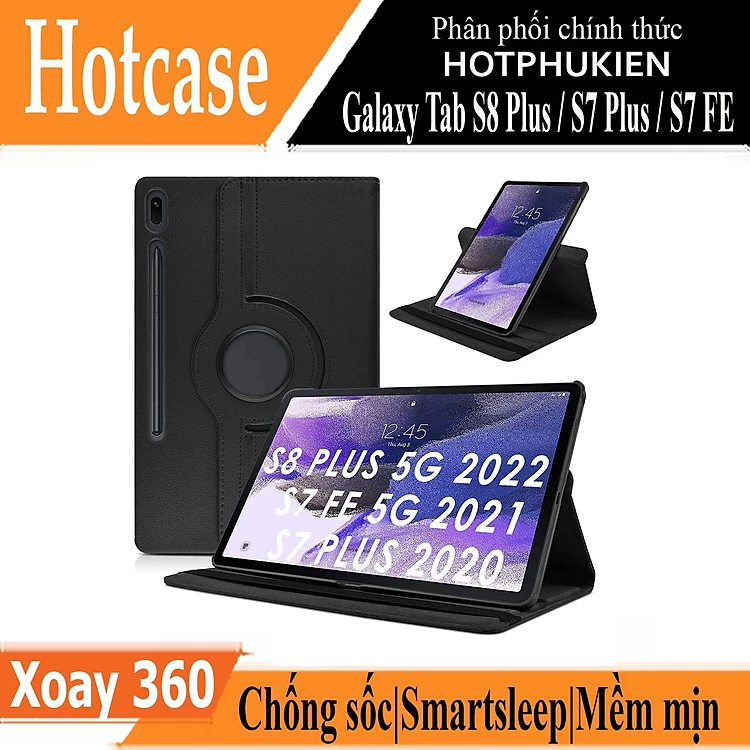 Case bao da chống sốc xoay 360 độ cho Galaxy Tab S8 Plus / Tab S7 Plus / Tab S7 FE 12.4 inch hiệu HOTCASE (thiết kế siêu mỏng hỗ trợ Smartsleep, gập nhiều tư thế, tản nhiệt tốt) - hàng nhập khẩu