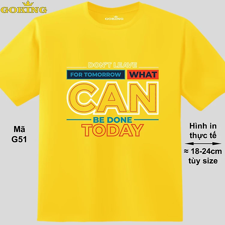 Don't leave for tomorrow what can be done today, mã G51. Áo thun nam nữ siêu đẹp