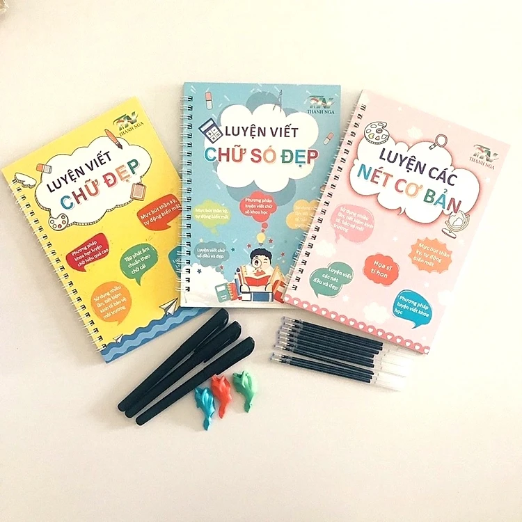 Bộ 3 Vở Luyện Viết Chữ Đẹp Tặng Kèm Bút Tự Xoá - Hành Trang Cho Bé Vào Lớp 1 - Thanh Nga