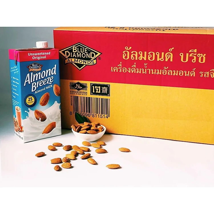 Blue Diamond - Thùng Sữa Hạt Hạnh Nhân ALMOND BREEZE Không Đường 946ml x 12 Hộp
