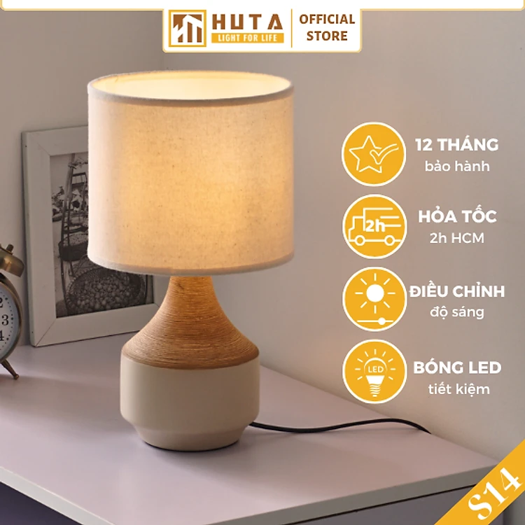 Đèn Ngủ Để Bàn Gốm Sứ Cao Cấp HUTA S14 Vân Màu Gỗ Độc Đáo Sang Trọng, Decor Trang Trí Phòng Ngủ, Khách Sạn, Đọc Sách Đầu Giường, Điều Chỉnh Độ Sáng, Ánh Sáng Vàng