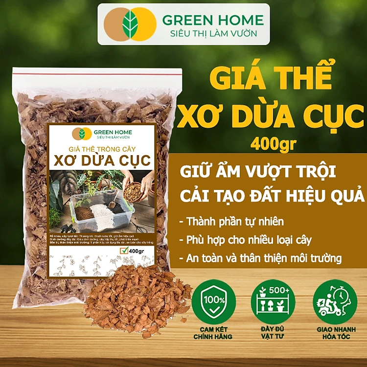 Xơ Dừa Cục Greenhome, Bao 400gr, Giá Thể Đã Qua Xử Lý, Size 1-2cm, Viên Đều Đẹp, Sạch Khuẩn, Trồng Kiểng Lá, Lan
