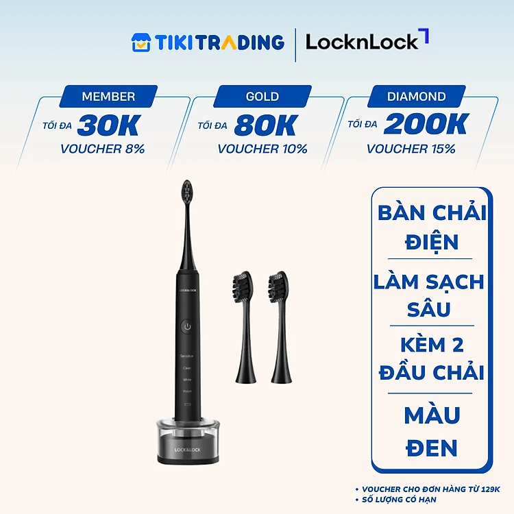Bàn Chải Đánh Răng Điện Locknlock ENR346 - DC3.7V, Trọng Lượng 235g, Sạc Không Dây