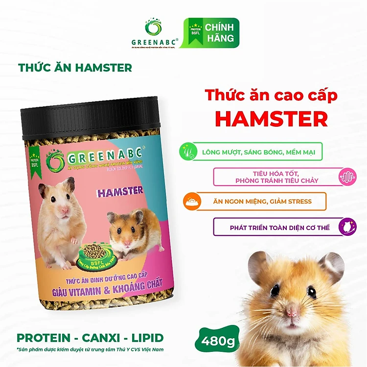 Thức ăn Hamster GREENABC- Hỗ trợ tiêu hóa, giảm căng thẳng – Hộp 10g và 480g