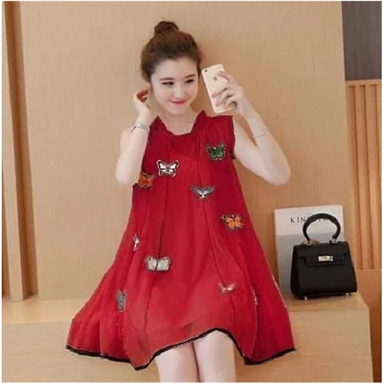 ĐẦM BẦU CÔNG SỞ VÁY BẦU SUÔNG CHIFFON KẾT BƯỚM DN190610