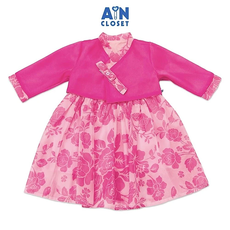 Đầm Hanbok cách tân bé gái họa tiết Hoa Hồng tơ ánh nhủ - AICDBGZRV6YD - AIN Closet
