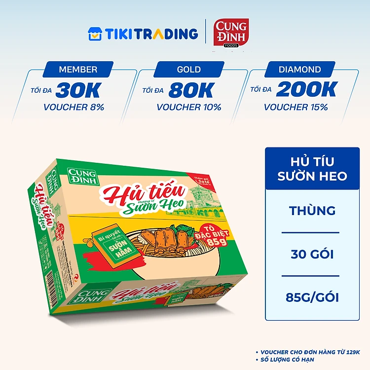 Thùng 30 Gói Hủ Tiếu Sườn Heo Cung Đình (85g x 30 gói)