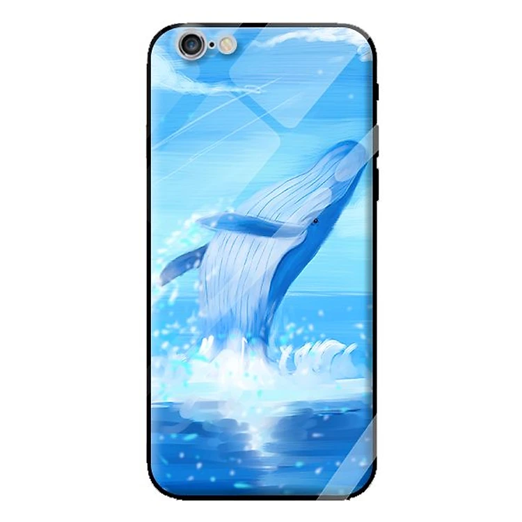 Ốp kính cường lực cho iPhone 6 Plus mẫu cá voi xanh 1 - Hàng chính hãng