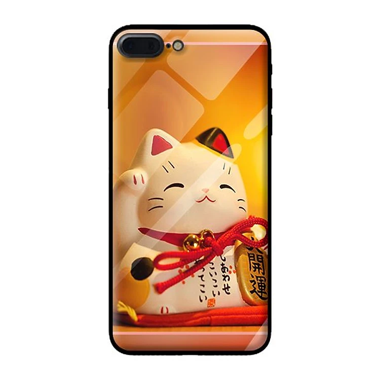 Ốp kính cường lực cho iPhone 8 Plus mẫu mèo may mắn 1 - Hàng chính hãng