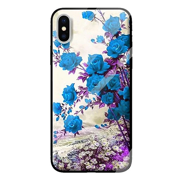 Ốp kính cường lực cho iPhone X mẫu HOA HỒNG XANH 1 - Hàng chính hãng