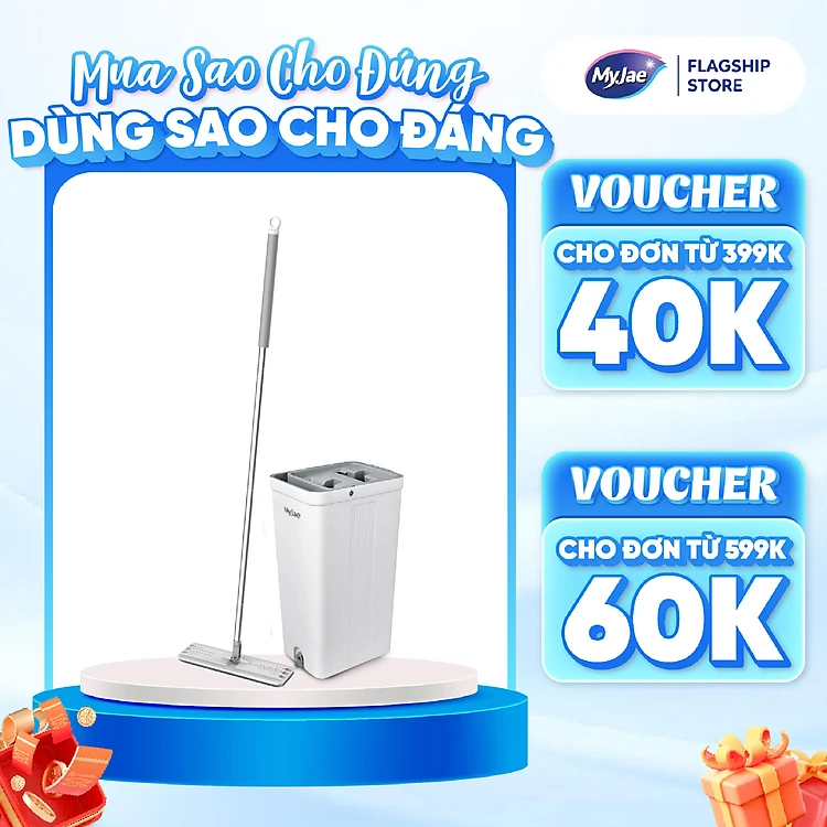 [Phiên bản nâng cấp] Bộ Lau Nhà MyJae Đài Loan Sợi Microfiber 2 Ngăn Tự Vắt Xoay 360 Độ Thông Minh 123cm