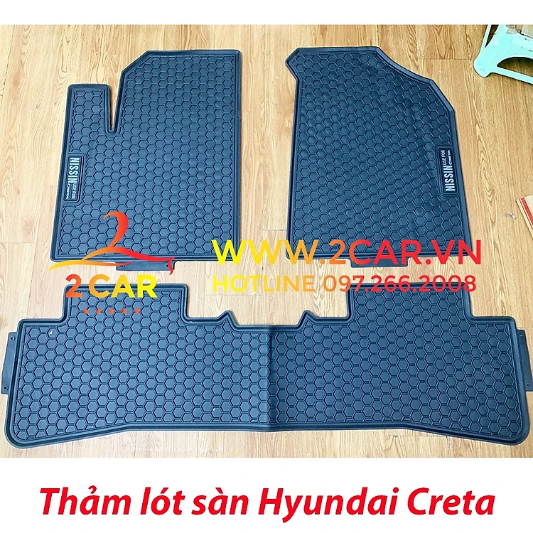 Thảm sàn, Thảm lót sàn xe Hyundai CRETA 2022 2023 cao su đúc, vân tổ ong, không mùi, MẪU NISSIN