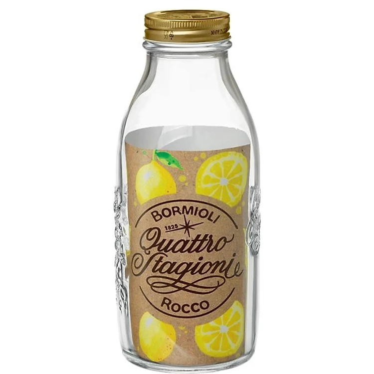 Chai thủy tinh Quattro 1L – Nắp vặn kín hơi, đựng nước ép – sinh tố – Bormioli Rocco, Nhập khẩu Ý