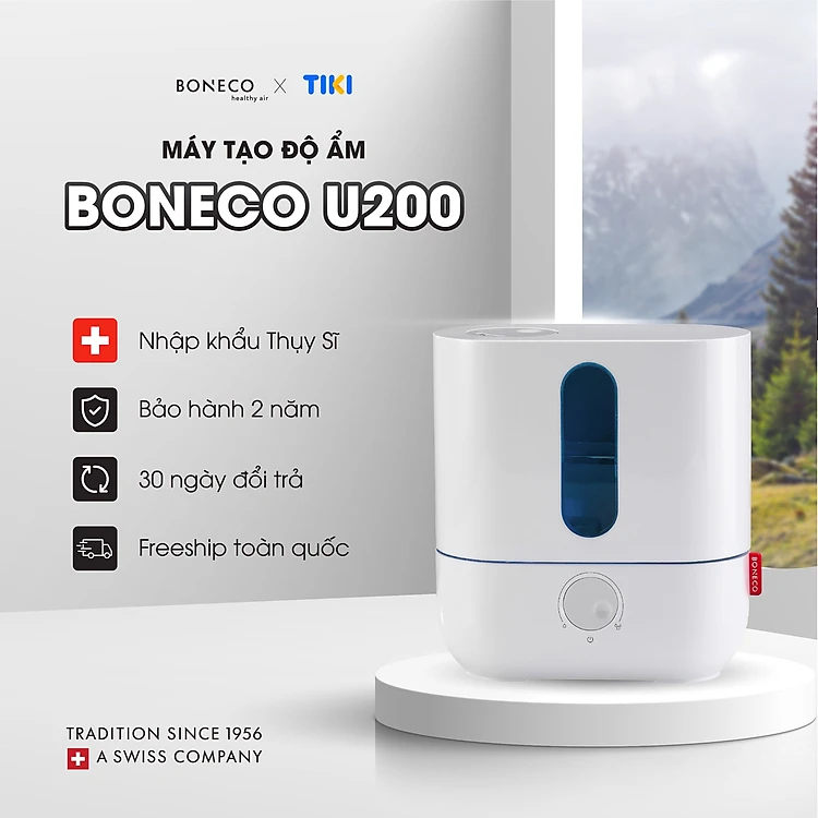 Máy Phun Sương Tạo Ẩm Cao Cấp BONECO U200 Khuếch Tán/Xông Tinh Dầu, Bộ Lọc Kháng Khuẩn Chống Viêm Mũi Cho Trẻ Em, Giữ Ẩm Da (<30m2) - Hàng Nhập Khẩu