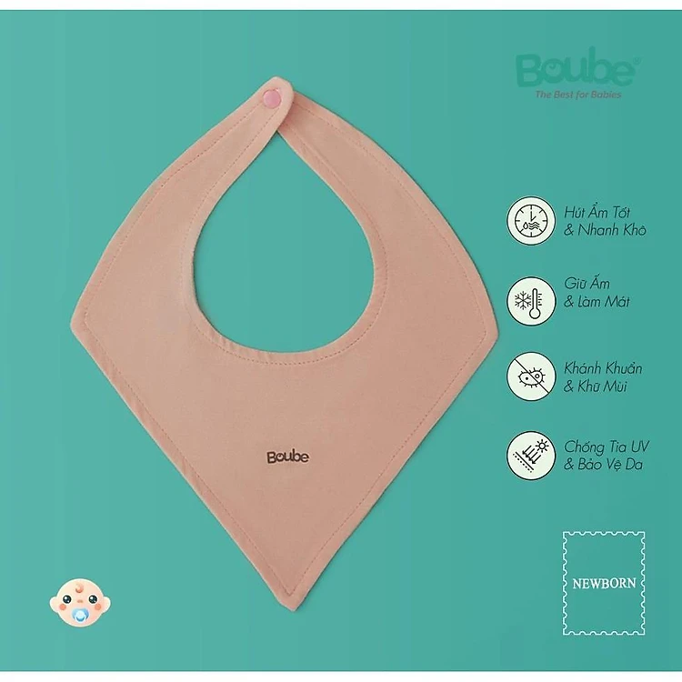 Khăn yếm tam giác đeo cổ có cúc bấm cho em bé sơ sinh, trẻ nhỏ Boube nhiều màu, vải sợi tre Bamboo thông minh, thoải mái