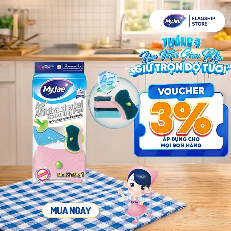 Miếng Bọt Biển Rửa Chén Kháng Khuẩn MyJae An Toàn Bền Bỉ