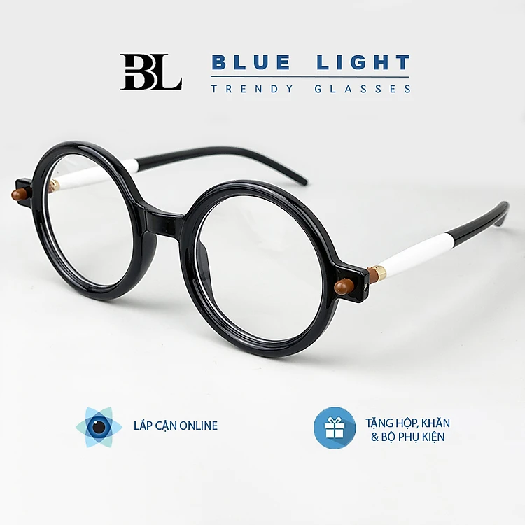 Gọng Kính Cận, Kính Giả Cận Nam Nữ, KUBO Mắt Trong Xoe Gọng Nhựa Viền Dày Cứng Cáp, Đen Trắng - BLUE LIGHT
