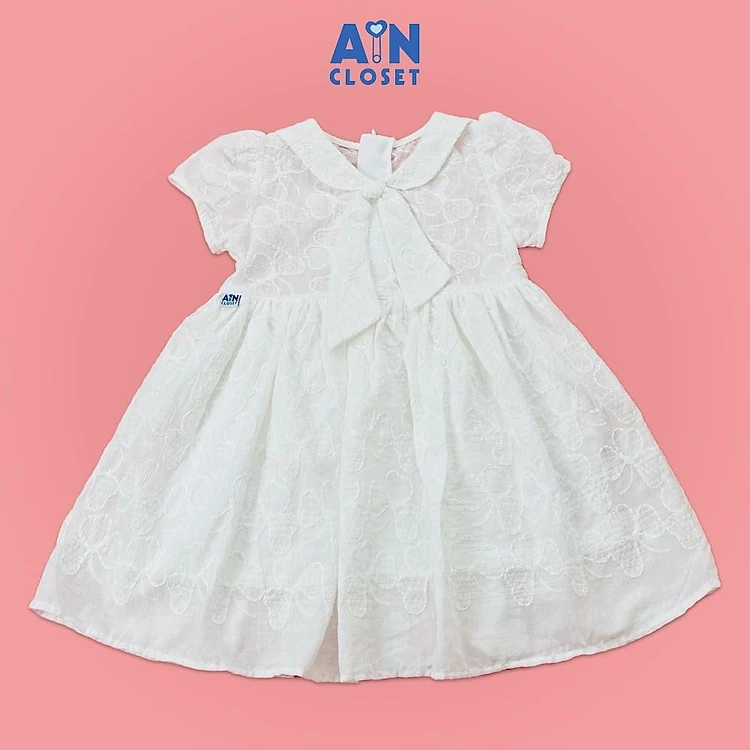 Đầm bé gái họa tiết hoa Thêu Trắng cotton boi - AICDBG8PBQOU - AIN Closet