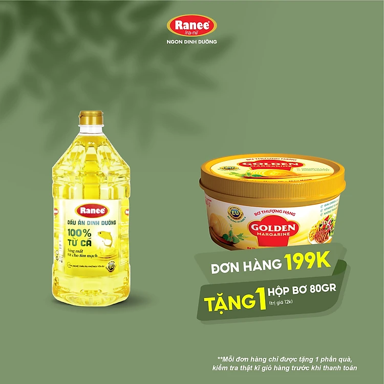 {Đơn 199k tặng hộp bơ 80g} Dầu ăn dinh dưỡng Ranee 2 lít