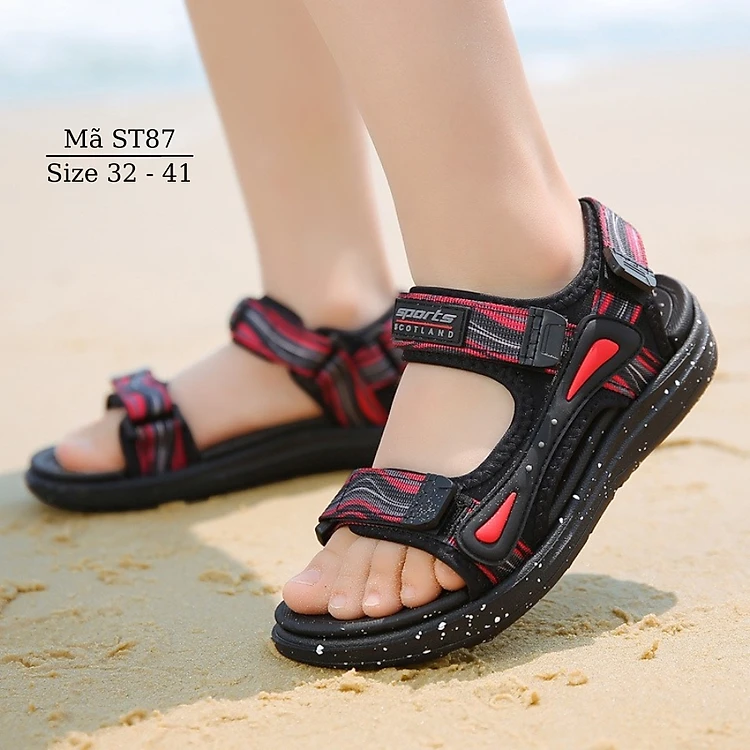 Dép quai hậu bé trai đi học đi biển size đại kiểu dán thể thao cá tính màu đỏ đen siêu bền đế êm nhẹ chống trơn thời trang cho trẻ em nam 6 - 15 tuổi ST87