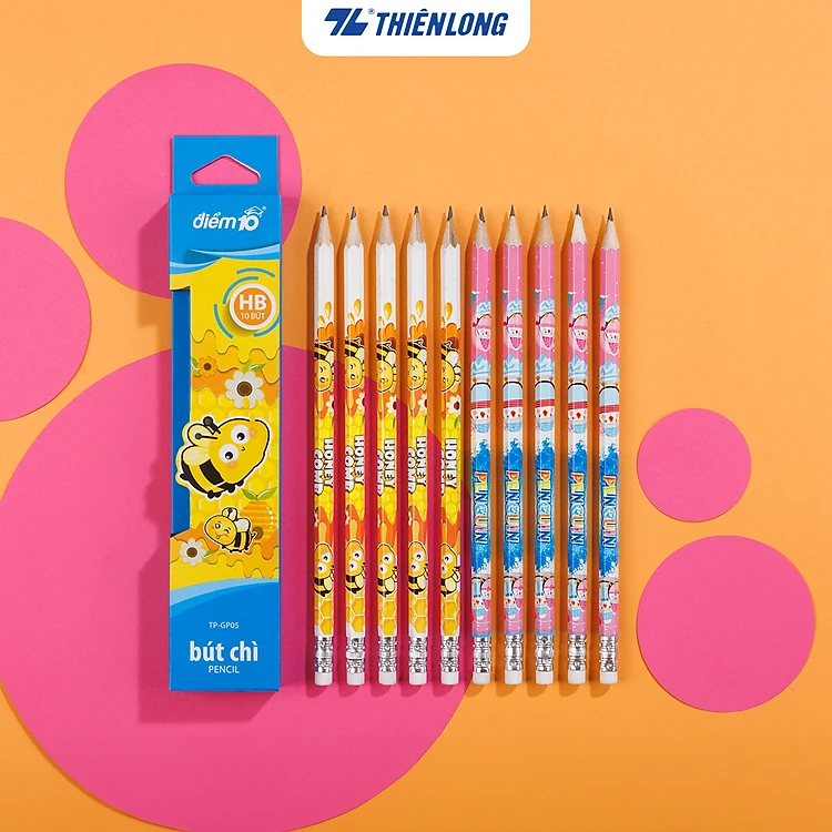 Hộp 10 Bút chì gỗ Thiên Long Điểm 10 TP-GP05 - Độ cứng HB - Viết êm, ngòi mềm hạn chế gãy