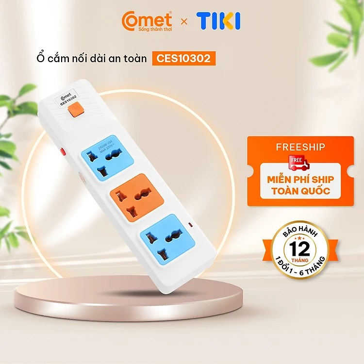 Ổ Cắm Điện Nối Dài COMET CES10302 2500W Dài 2m, 3 lỗ 3 chấu, có cầu chì bảo vệ