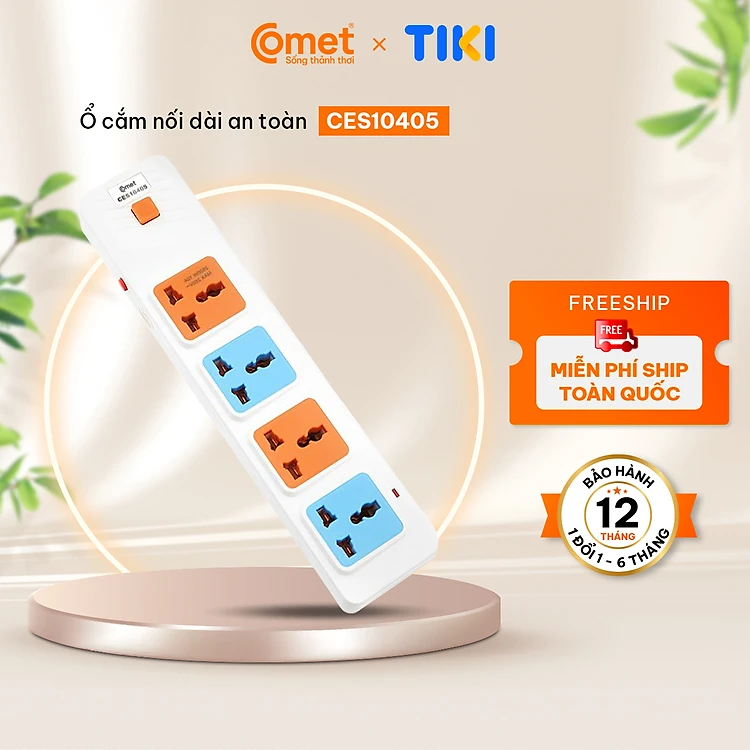 Ổ Cắm Điện Nối Dài COMET CES10405 Dây Dài 5M, 4 Lỗ 3 Chấu, Chất Liệu Nhựa Pp Chống Cháy, Có Cầu Chì Bảo Vệ