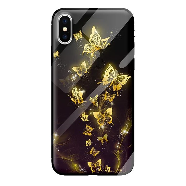 Ốp kính cường lực cho iPhone X nền bướm vàng 1 - Hàng chính hãng