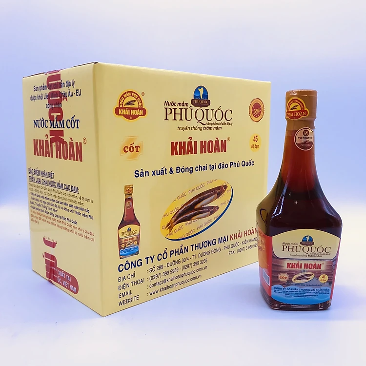 - Nước mắm Khải Hoàn Phú Quốc 43 độ đạm: thông tin sản phẩm- Sản xuất và đóng chai tại: Đảo Phú Quốc, Kiên Giang, Việt Nam.